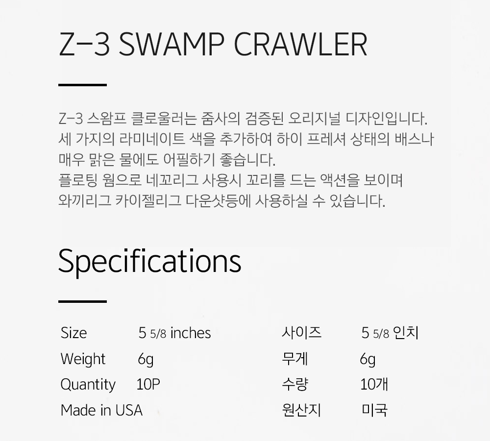 zoom bait 줌 베이트 사의 가장 잘 알려진 플로팅 웜은 아마 Z-3 스왐프 크로울러가 아닐까 싶네요.