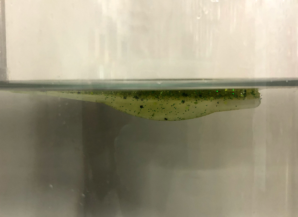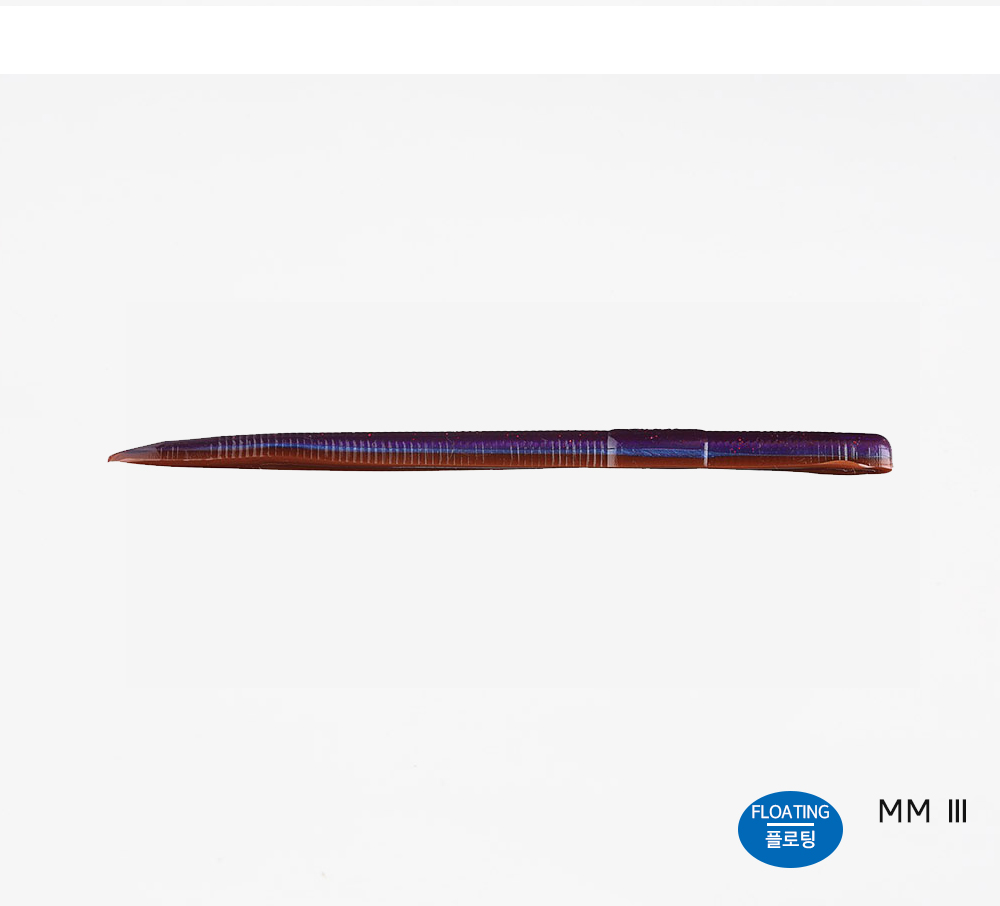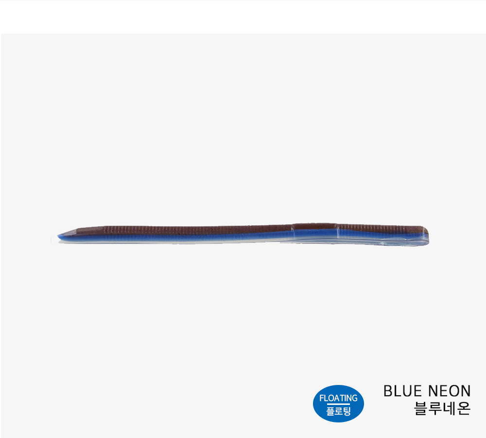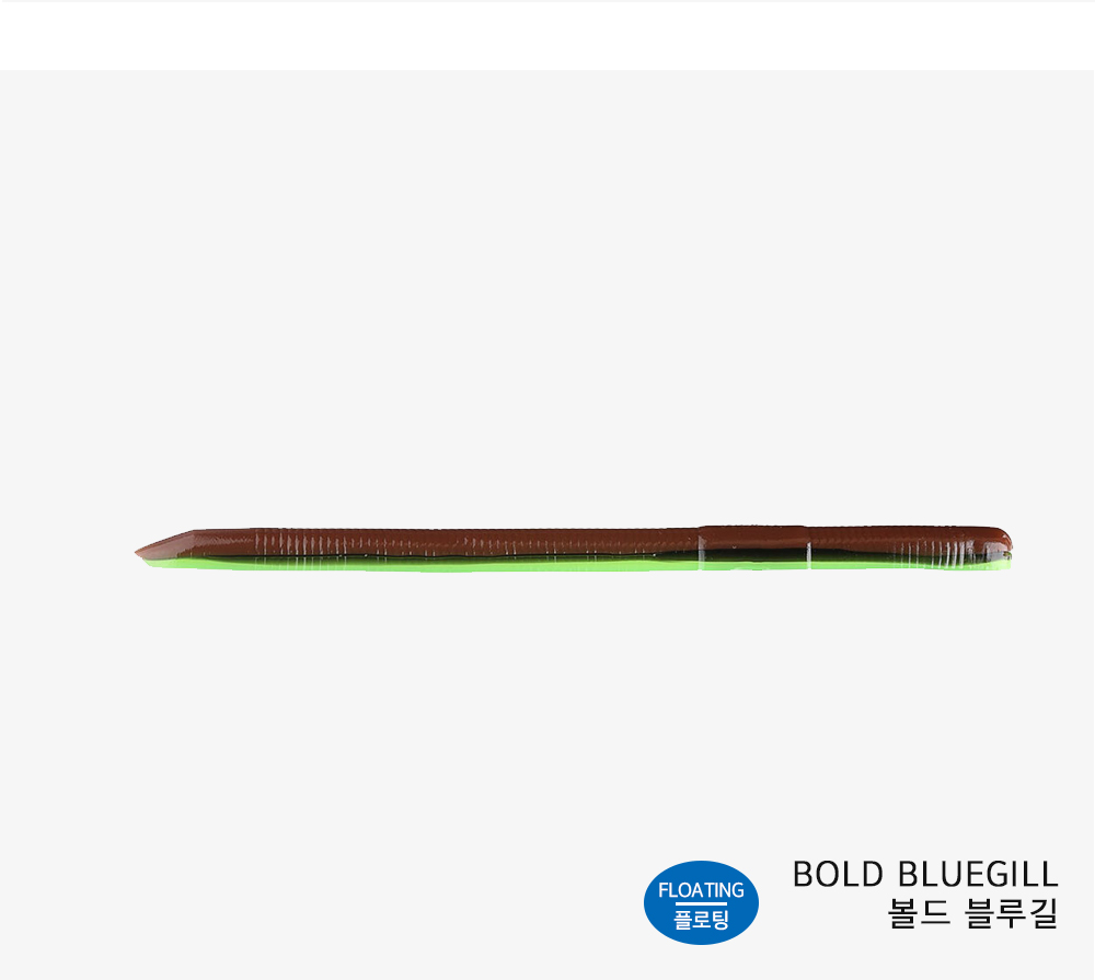 플로팅 웜의 장점을 꼽자면 물에 뜨는 성질이 있어 수중 액션 시 꼬리 부분이 위쪽을 향한다는 점입니다.